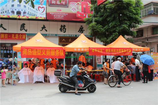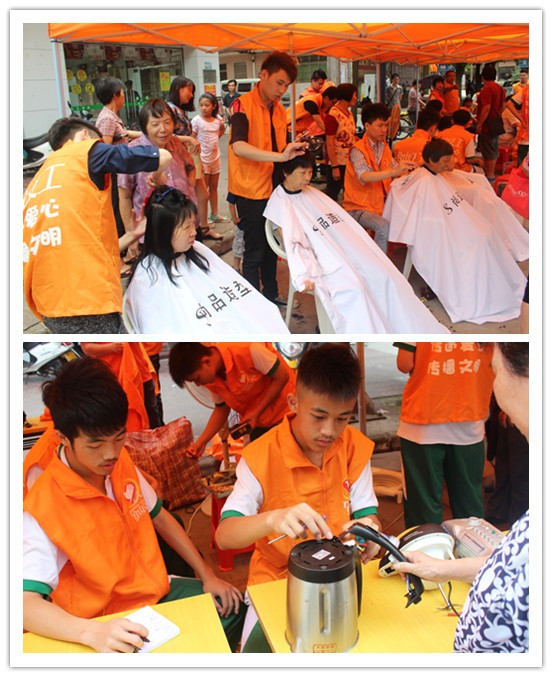 5月18日,市义工联晴天义工联服务队在台城新桥社区开展“情牵社区”—便民利民志愿服务活动。培英学校义工服务队、人民大药房义工服务队、尚品造型义剪服务队和台山图书馆4支义工服务队共26名义工参加了本次活动。活动现场设置家电维修、卫生保健、义务剪发、流动书车等志愿服务,深受社区居民的欢迎。活动从早上9点30分持续到下午的5点,虽然活动期间下起一阵暴雨,但无阻义工们的热情。现场发放义工宣传资料300多份,为近70名市民提供了义剪服务,为120多名市民提供卫生保健服务,为广大市民免费维修了50多个家用电器。