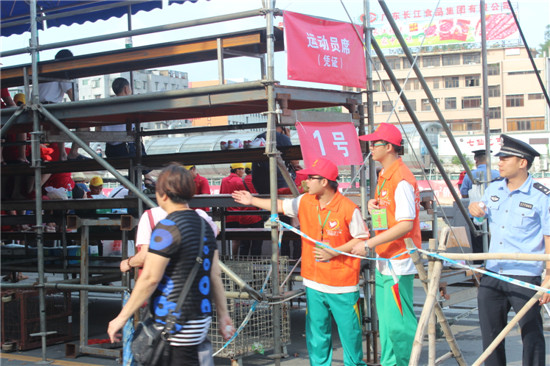 为能够更好地服务广大群众,做好后勤保障服务工作,此次龙舟赛志愿服务通过前期招募和培训,将参加的义工分为10个小组,分别负责验票、现场指引、维护现场秩序、派发饮用水等志愿服务。龙舟锦标赛虽在8点开始进行,但义工们6点45分就集合在现场,各组长召集组员,各自到自己的岗位进行工作。身穿橙色马甲的义工穿梭在人群之中,为市民提供各类志愿服务。他们不怕苦,不怕累的义工精神受到市民们的一致好评。
