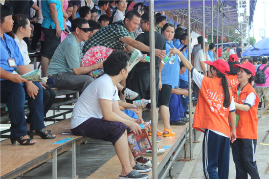 5月30日,2014年“颐和温泉城杯”龙舟锦标赛在台城通济河举行。团市委、市义工联组织了100名义工到现场参与龙舟赛后勤服务工作。