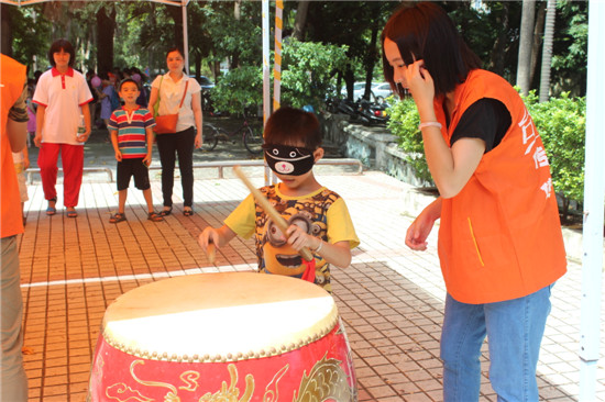 游园活动在下午2点准时拉开了帷幕,活动设置了多个摊位,包括游戏摊位、义卖摊位和招募摊位等。游戏摊位前非常受欢迎,有盲人击鼓、钓鱼、猜谜语和绘画等游戏。参与者在完成一项游戏后,可得到一个印花,集齐规定的印花,可兑换小礼物。义工超人也在此次活动中的义卖摊位出现,也受到了小朋友们的热捧。游园会还邀请了青少年艺术中心的同学到现场为市民表演节目,家长与小朋友一起观看表演,一起玩游戏,增强了家长和孩子之间的情感交流。随后,市义工联、市国税义工服务队代表为台城第三小学和横湖小学的20多名同学派发了“六一”礼物,帮助他们完成小小的愿望。活动持续到当天下午5点,得到了市民的一致好评。