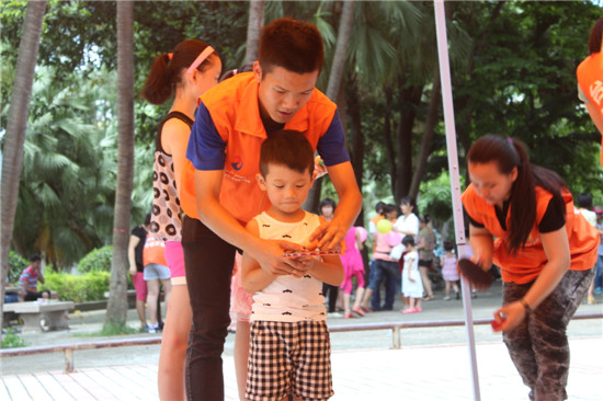 6月1日,团市委、市义工联、市国税义工服务队和晴天义工服务队在市青少年活动中心举行“朝阳快乐营”六一游园会”活动。吸引了大批市民带着小朋友前来参加活动。