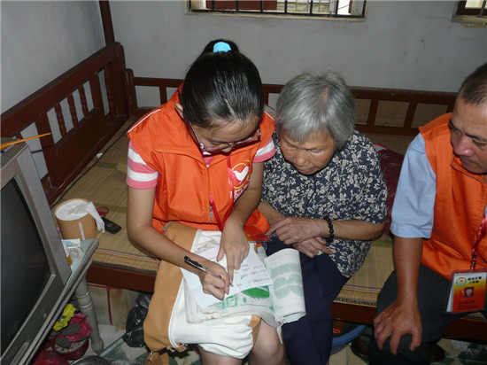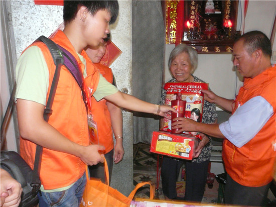 娥姨今年79岁,与智障儿子每月仅靠300多元的低保补贴来维持家庭一切开支,生活困难。在了解情况后,阳光计划工作组的义工朋友给娥姨家送去面、麦片、洗发水等生活用品,还受热心人士娴清小姐之托,给娥姨送去慰问金,叮嘱她保重身体,鼓励积极面对生活。