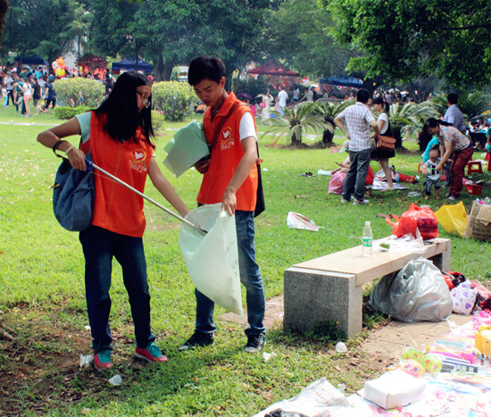 活动中,在团市委书记许国觉、团市委副书记谢永斌的带领下,把义工分成4小组进行服务,活动现场还设立了爱心咨询站,义工们按照分工带齐垃圾袋、垃圾夹等清洁工具,边派发垃圾袋边向市民宣传文明登山、保护山林、注意防火、预防登革热的重要性,同时清理市民在登高时留下的风筝、塑料袋、饮料罐等不可降解的垃圾。义工们的行为感染了登高的市民,纷纷自觉带走各自的垃圾。