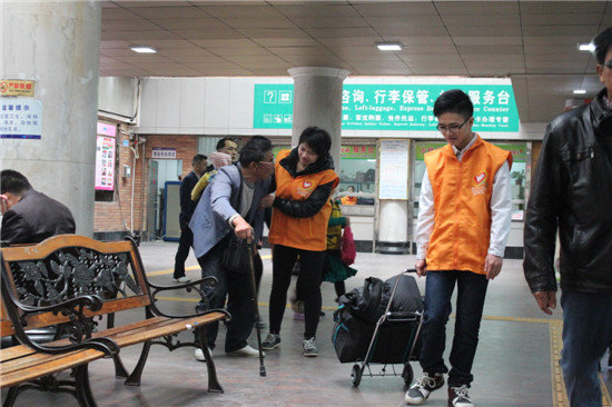 在车站里,身穿橙色马甲的义工穿梭在人群中,为广大旅客提供义工服务,有的帮旅客搬运行李,有的手持文明劝导牌维持秩序,有的向旅客派发交通安全常识、消防安全常识等宣传单张,有的为旅客们指引路线等,义工们热情而贴心的服务受到市民们的一致好评,纷纷举拇指“点赞”。(市义工联:谭慧娴)