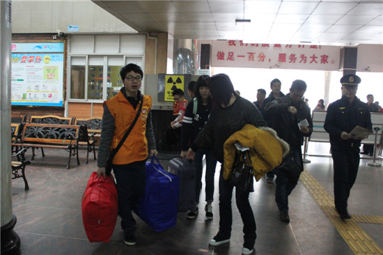 “我志愿加入‘温暖春运行 情暖回家路’义工行列。我承诺,我将尽己所能,坚守岗位......”义工助春运活动在庄严的宣誓声中拉开序幕,30多名义工右手握拳,在义工代表的带领下庄严宣誓,承诺将尽己所能为春运做贡献。随后,义工们在工作人员的安排下,到各个服务点工作。