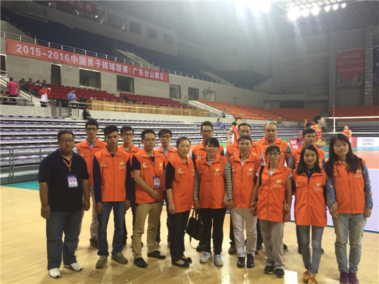11月15日,“中国男子排球联赛”广东台山赛区在新宁体育馆举行,市义工联组织了30多名义工为大会提供协助验票、指引等义工服务。