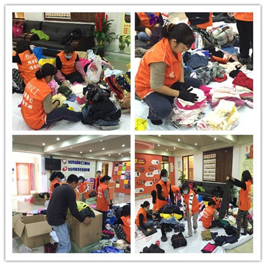 为帮助我市困难群众度过一个温暖且温馨的冬天,从12月中旬开始市义工联启动“爱满台山·暖冬行动”,向社会广泛募集冬衣,得到了社会各界的积极响应,募集了上万件爱心衣服。1月15日,市义工联组织20多名义工在市义工联总部将爱心人士捐赠出来的冬衣进行分拣、包装等工作。