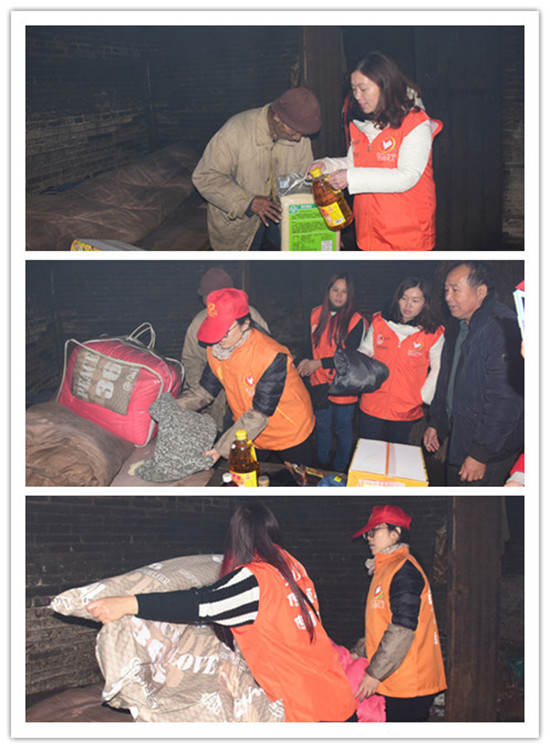 寒风夹着冰雨,恶劣的天气却挡不住义工们的脚步。从昨天开始,义工们将整理好的冬衣分组送到各镇,联合镇团委,一家一户走访,将衣服送到低保户、孤寡老人、街头露宿者手中。对于义工的到来,他们都很高兴,尤其是一些独居长者,如见到儿女归家,热情地起身相迎,当义工把冬衣送到他们手上时,他们红着眼眶不停地说着“谢谢你们,谢谢”,义工还仔细地询问他们当前的生活状况,嘱咐他们要保重身体,注意保暖。
