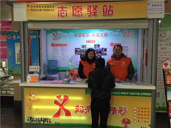 1月24日是2016年春运首日,为让身处台山的外来务工人员能顺利返乡, 1月24—25日,市义工联组织了10多名义工到台山汽车总站开展“青春暖流”之温暖回家路行动,拉开2016年台山市春运的大序幕。