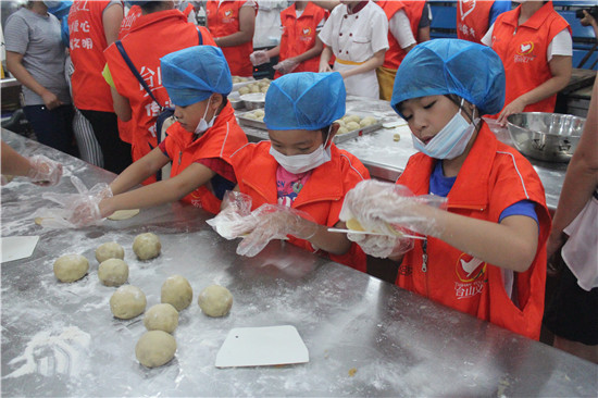 9月11日晚,市义工联联合台城街道、供销社等多支党员义工服务队、亲子义工服务队到厨艺技工学校联合开展爱心月饼制作活动。
