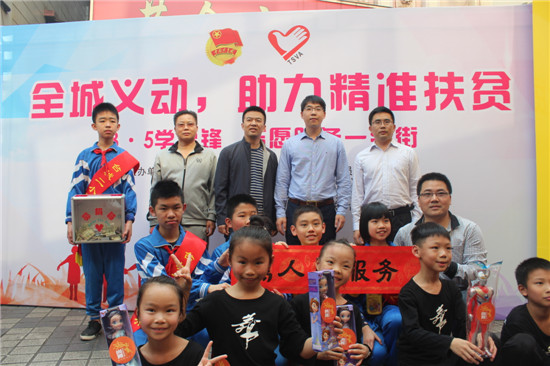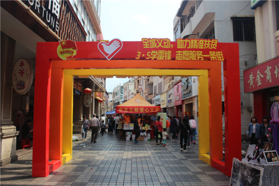 今年3月5日是第54个雷锋纪念日,为在全社会弘扬“奉献、友爱、互助、进步”的志愿者精神,更好地助力和推动我市新时期精准扶贫工作,当天下午,团市委联合市扶贫办、市文明办、市义工联等部门单位在台城步行街开展“全城义动,助力精准扶贫”学雷锋义卖服务一条街活动,筹集善款,帮助我市扶贫对象子女解决读书难问题。