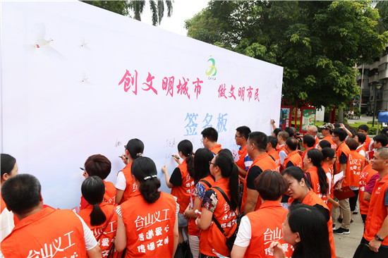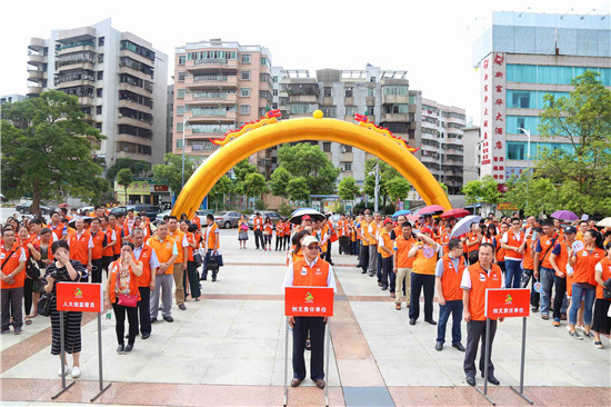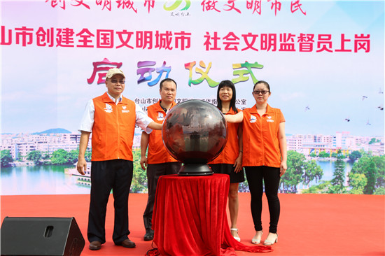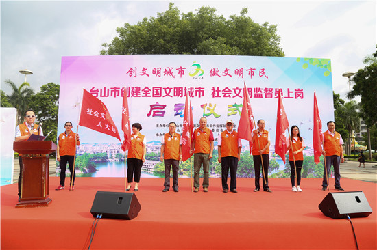 为充分发挥社会各界对文明城市创建工作的监督作用,建立社会监督、舆论监督、群众监督的良性运行机制,形成人人参与创文的浓厚氛围,6月1日上午,我市在台城石花文化广场举行“台山市创建全国文明城市 社会文明监督员上岗启动仪式”。团市委、市义工联组织了30多名义工参加本次活动。