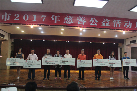 随后,张磊宣布台山市2017年慈善公益活动启动。张磊、李惠文、黄伟红、李健慈等四套班子领导带头现场捐款。港澳社团、企业家、部门单位代表等团体及个人也在现场进行慈善捐赠。现场认捐总数达2000多万元,其中人民币1718万,港币465万。