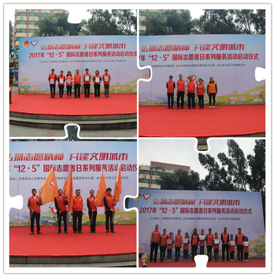首先,团市委书记谢永斌同志在仪式上介绍了2017年“12·5”国际志愿者日系列活动及其重要意义。接着,启动仪式上为2017年为对建设文明台山做出了积极贡献的先进义工及义工团体进行了多项嘉许表彰,分别有“优秀义工工作管理者”、“先进义工组织奖”、“义工服务优秀项目奖”、“先进家庭(亲子、情侣)义工”奖、“台山市五星级义工服务奖”。