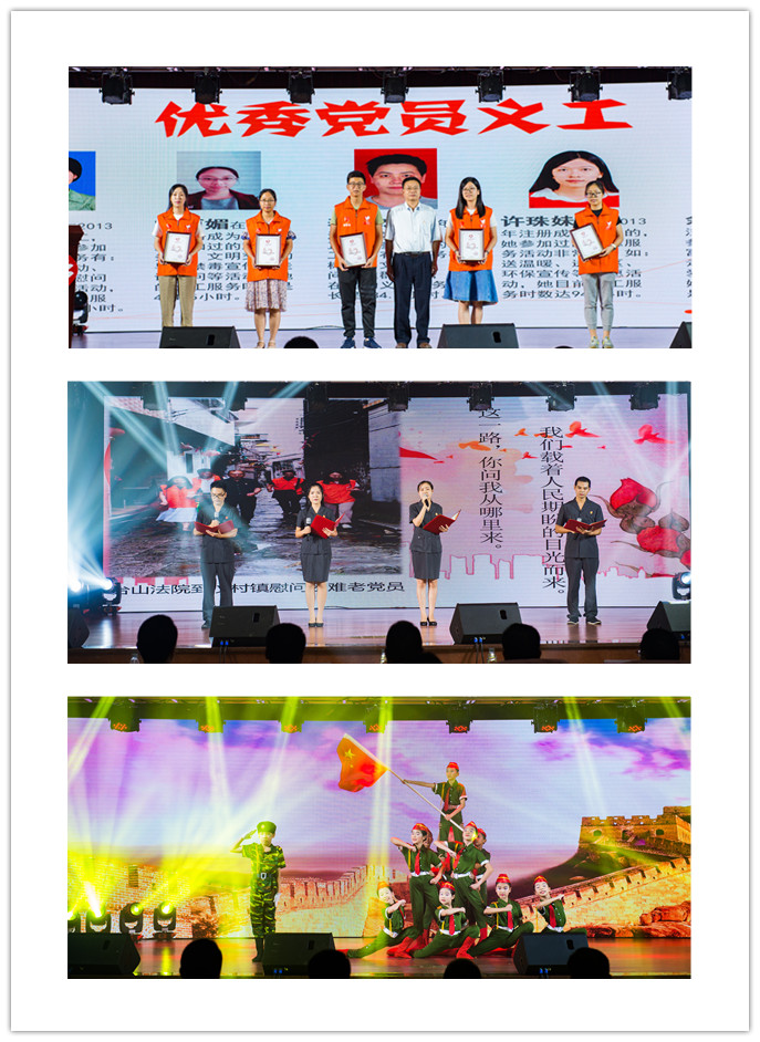 晚会共分为三个篇章。第一篇章是温情回顾,这一篇章播放了义工联十周年宣传片,回顾了年志愿者服务的点点滴滴,党员义工代表分享义工故事,介绍义工文化产品。第二篇章是爱的见证,这一篇章为先进志愿者进行颁奖,一共颁发了优秀社会义工、优秀党员义工、优秀党员义工服务队、优秀社会义工服务队、十周年特殊贡献奖等五大奖项。第三篇章是义路前行,这一篇章为现场观众呈现了歌舞《不忘初心》、台山义工主题曲独唱《义满侨乡》、舞蹈《接班人》等5个精彩节目。各义工服务队的出色表演赢得观众阵阵掌声,节目高潮迭起,现场气氛热烈。