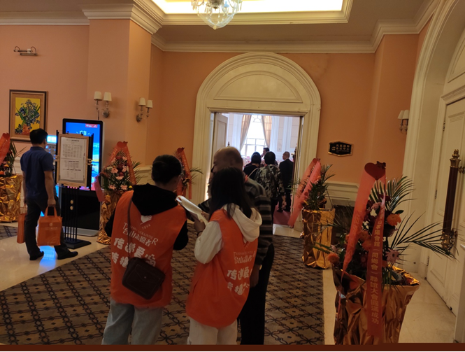 7日是参加联谊大会嘉宾们的报到时间,这天志愿者们一早到达报到酒店,协助大会提前做好各项准备工作,如将所需资料、礼品等物品一一装进袋子,并在报到时将物品分发给嘉宾。