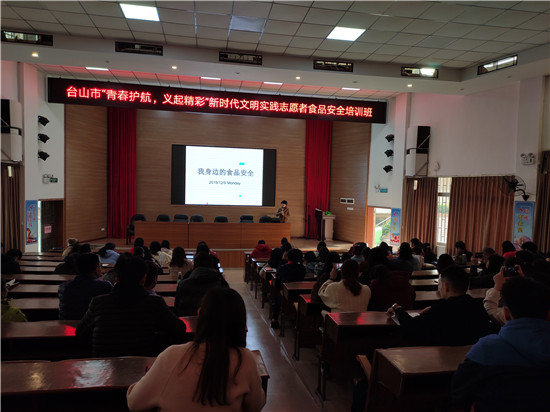 为进一步普及食品安全意识,动员全社会关心、支持和参与食品安全工作,12月9日,团市委、市义工联在开放大学礼堂举行“青春护航,义起精彩”新时代文明实践志愿者食品安全培训班,吸引了近100名志愿者骨干报名参加了培训。