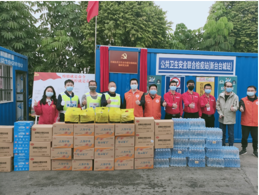 2月3日下午,台山团委联合义工联发动青年志愿者和爱心商家君煌酒楼、昌大昌超市,募集点心、维他奶、矿泉水、萨琪玛、方便面一批,到台城高速口慰问在防疫检疫工作一线奋战的同志,助力我市疫情防控工作,关心关爱战斗在一线的青年,让他们感受团的温暖,激发他们的战斗热情。