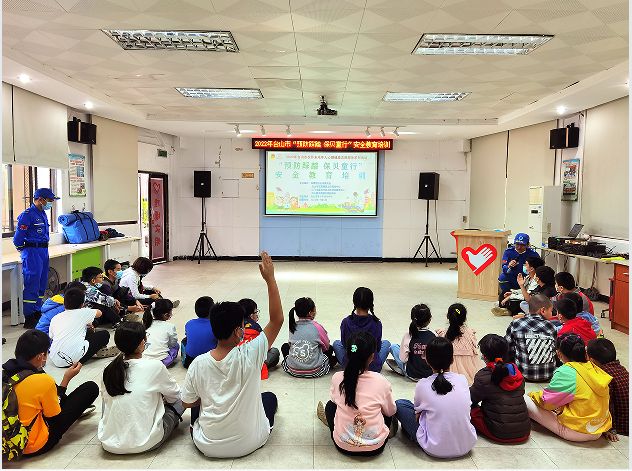 为了加强青少年面对拥挤踩踏情况时的应急处置能力,提高青少年的安全意识,11月5日,团市委、市义工联联合晨光社工中心、台山市蓝天救援志愿服务队开展2022台山市校外未成年人心理健康志愿服务系列活动——“预防踩踏 保贝童行”安全教育培训,志愿者老师与学生一起进行生动而有趣安全教育!