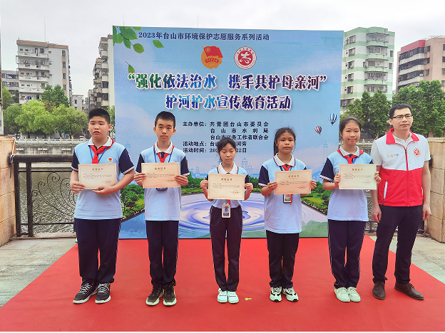主办方向参与护河护水的志愿者颁发2023年台山市“河小青”护河护水志愿者聘书,鼓励他们积极参与护河护水、公益宣传、水质监测、植树造林等护河护水志愿服务。