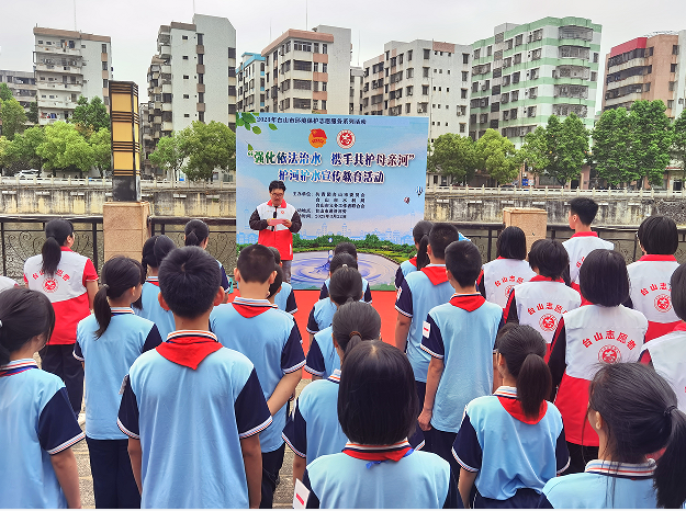 为深入贯彻党的二十大精神,贯彻落实习近平生态文明思想,推进生态文明建设,推动台山市河长制工作高质量发展,共建全国文明城市,3月22日上午,团市委、市义工联联合市水利局、市教育局等部门在台城通济河开展2023年台山市环境保护志愿服务系列活动之“强化依法治水 携手共护母亲河”护河护水志愿服务活动,少先队员、青年团员等志愿者代表共50人参与,一同为生态文明建设和可持续发展贡献志愿力量。