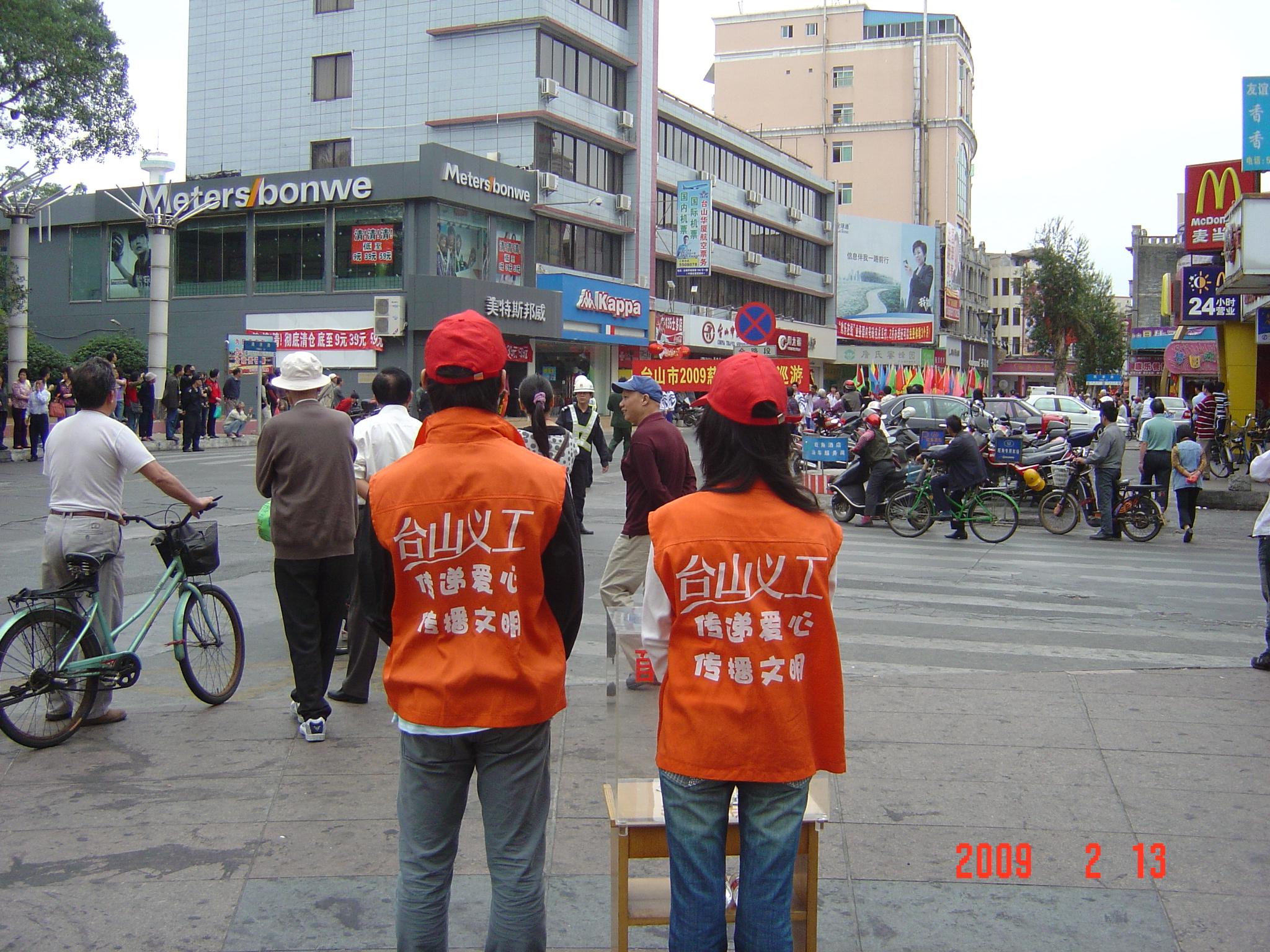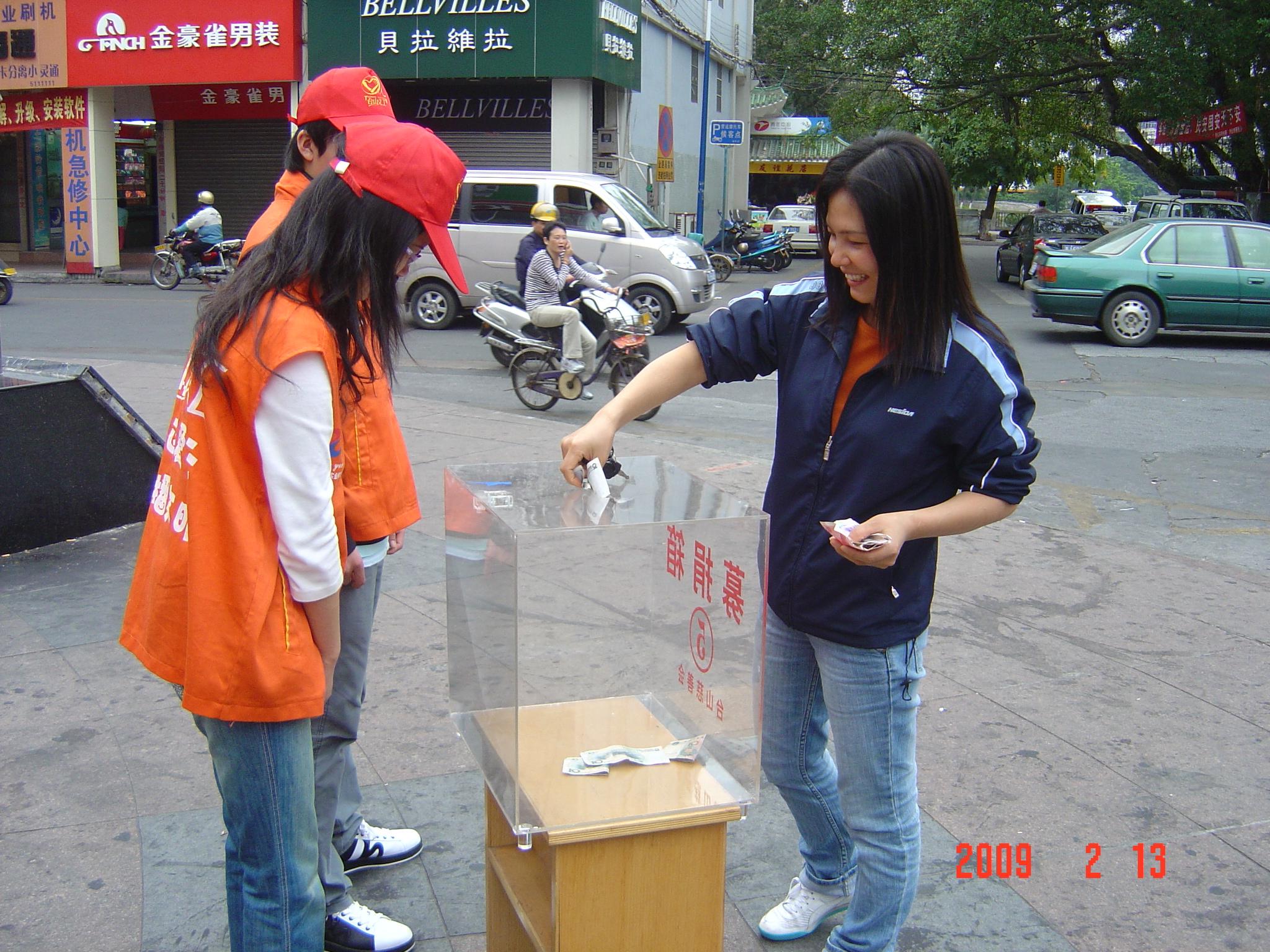 头顶大红舌帽、身穿醒目的橙色马甲背心,双手拿着慈善募捐箱,每一个市民前来捐款一次,就微笑地给他(她)点下头,道声“谢谢!”,或是向他(她)道一声爱心祝福,这就是我市的义工服务队,他们忙碌的身影、甜蜜的笑容也成为活动现场一道亮丽的风景。