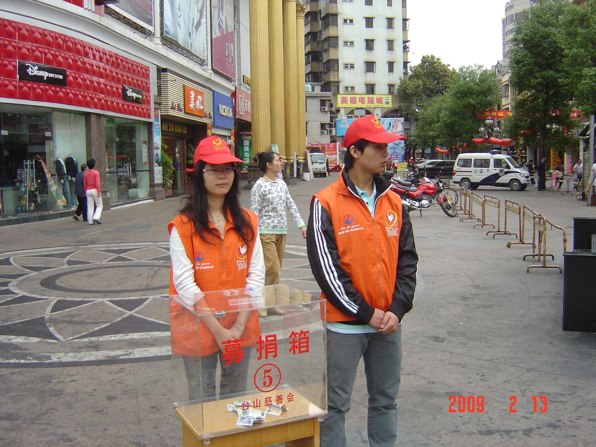 义工们分8个小组分别在游行路线的各个募捐点开展活动,通过义工们的努力,在还不到2个小时的游行时间内就筹集到了善款2千多元。
