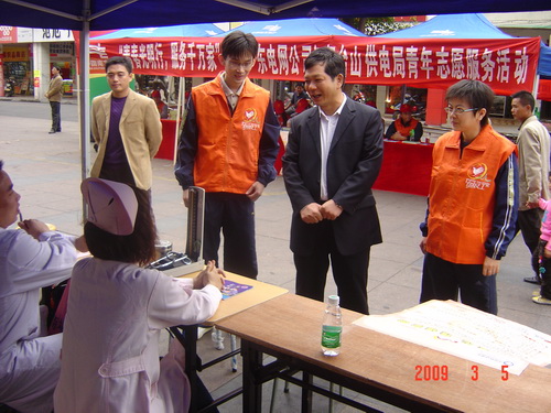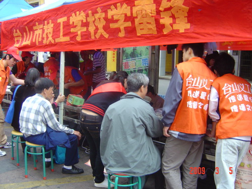 今年3月5日是学雷锋46周年纪念日,为进一步弘扬雷锋精神,发挥台山义工服务社会的精神,3月5日,团市委、市义工联在台城天岭购物广场组织开展了主题为“青春奉献建和谐,义工服务暖人心”的“3·5学雷锋”义工服务一条街活动。