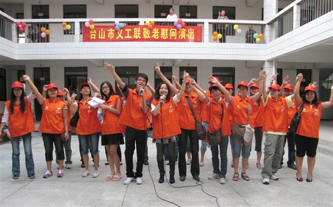 10月24号下午,藉重阳佳节到来之际,市义工联组织了40多名义工到台城敬老院进行慰问,当天,文艺义工们为老人们表演了丰富多彩的文艺节目,义工们还和老人家们玩起小游戏。很多热心的义工还带了一些小零食和营养品等慰问品前来探望老人家们。老人们长期呆在敬老院里,难得的如此热闹,都显得格外的兴奋,他们都希望义工们能多抽时间来探望他们,哪怕只是聊聊天,而很多义工都表示愿意多抽时间来陪陪老人家。