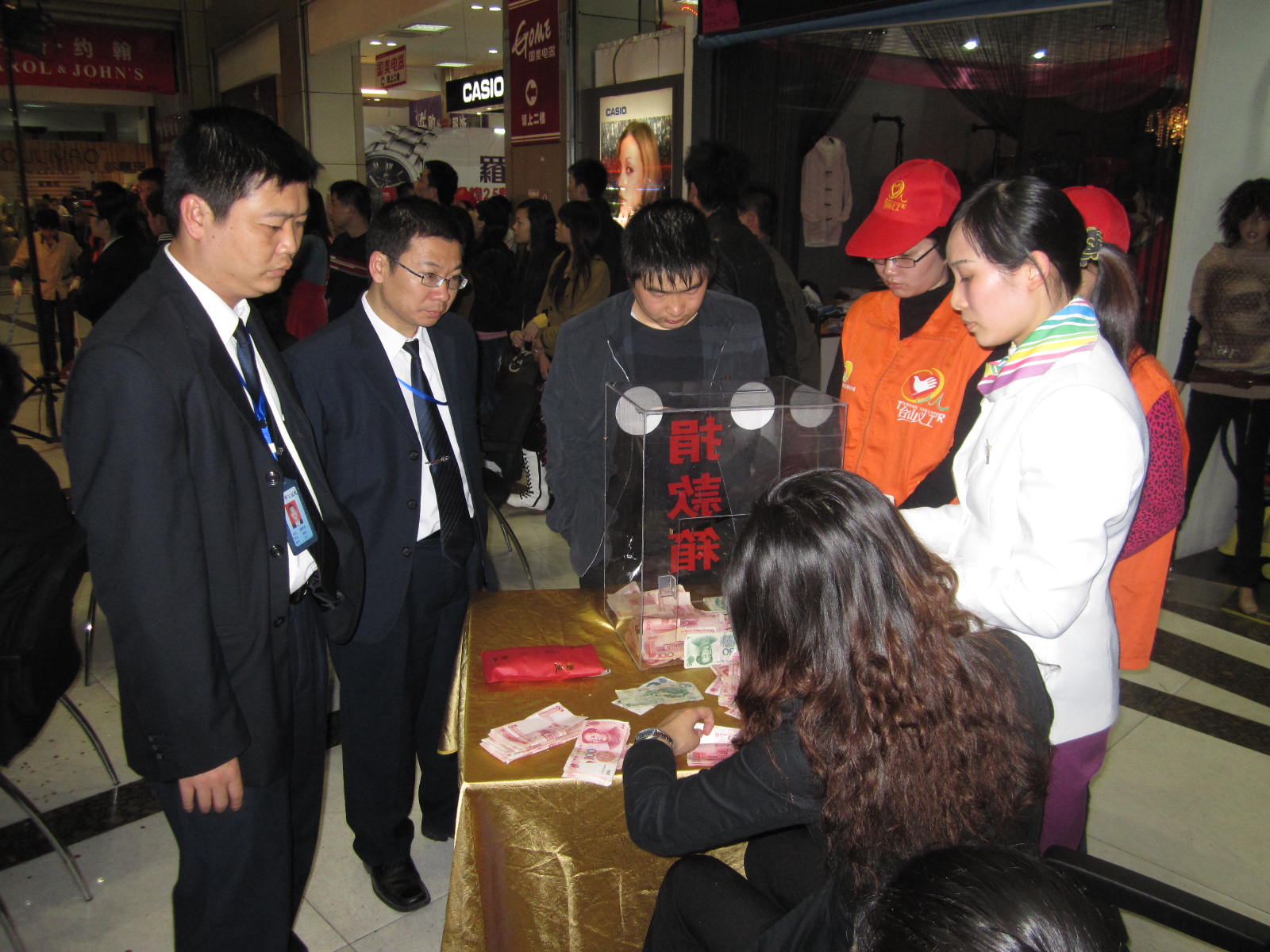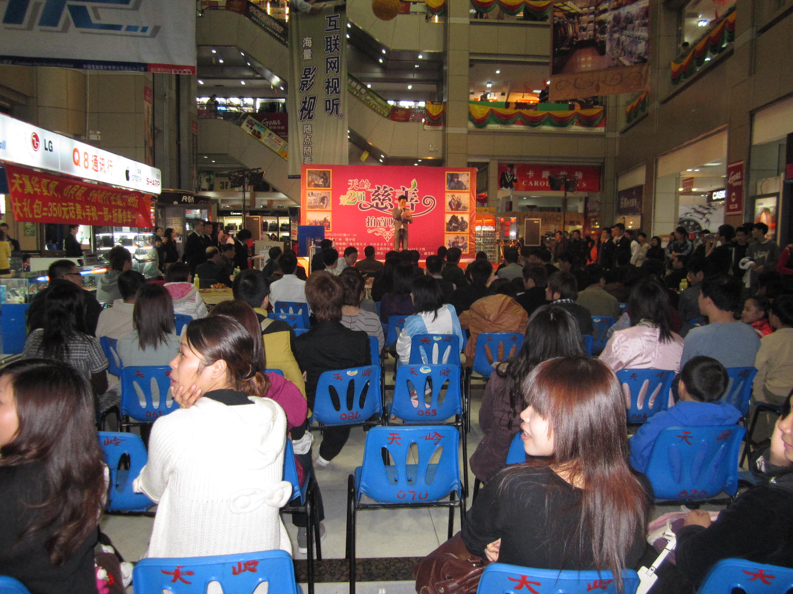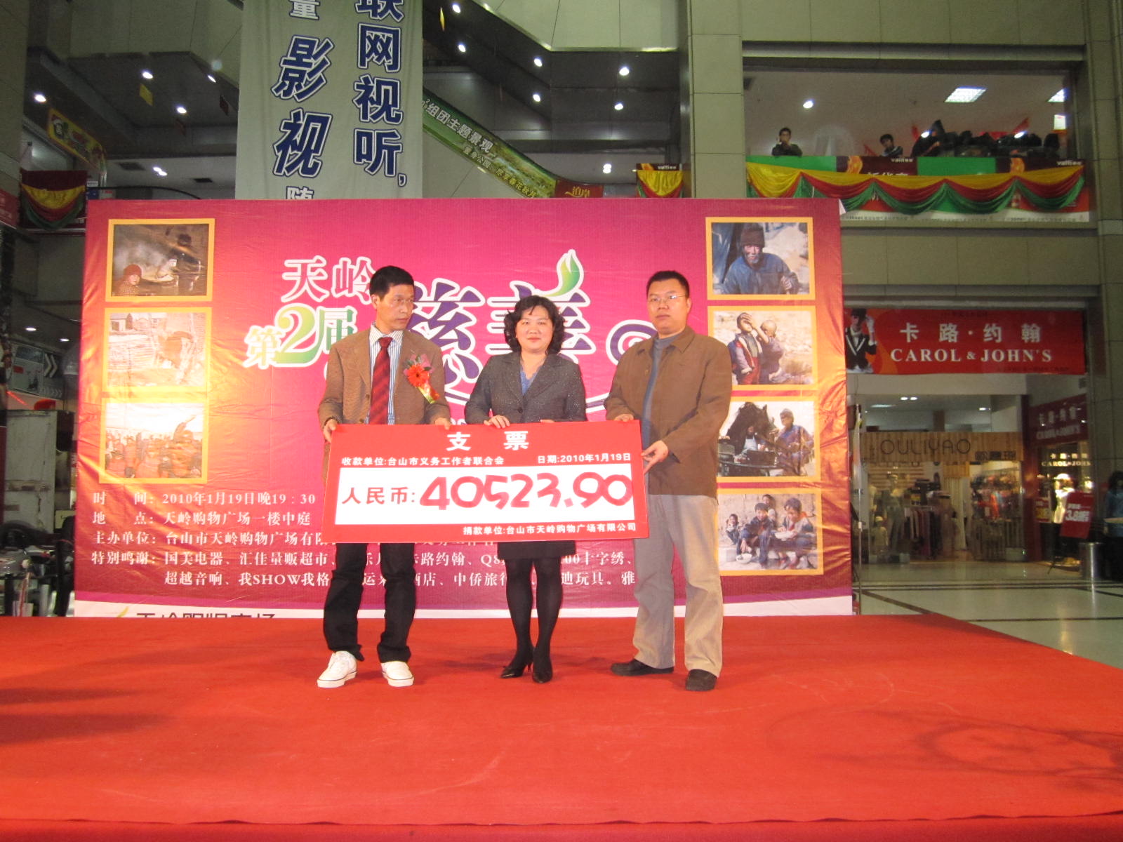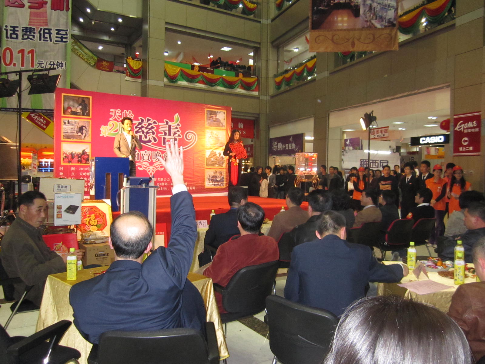 1月19号晚上,市义工联和台山天岭购物广场有限公司联合举办慈善拍卖会,拍卖活动于当晚8时在天岭购物广场中庭进行,市人民政府副市长、市义工联名誉主席黄淑质、团市委书记李国超、天岭房地产开发有限公司、天岭购物广场有限公司董事长陈国强等领导和嘉宾出席了本次拍卖活动。活动还邀请了台山公证处的公证员作了现场公证。