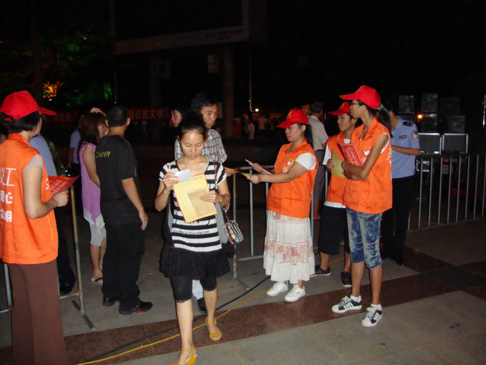 主题文艺晚会在石花文化广场举行,市义工联组织了