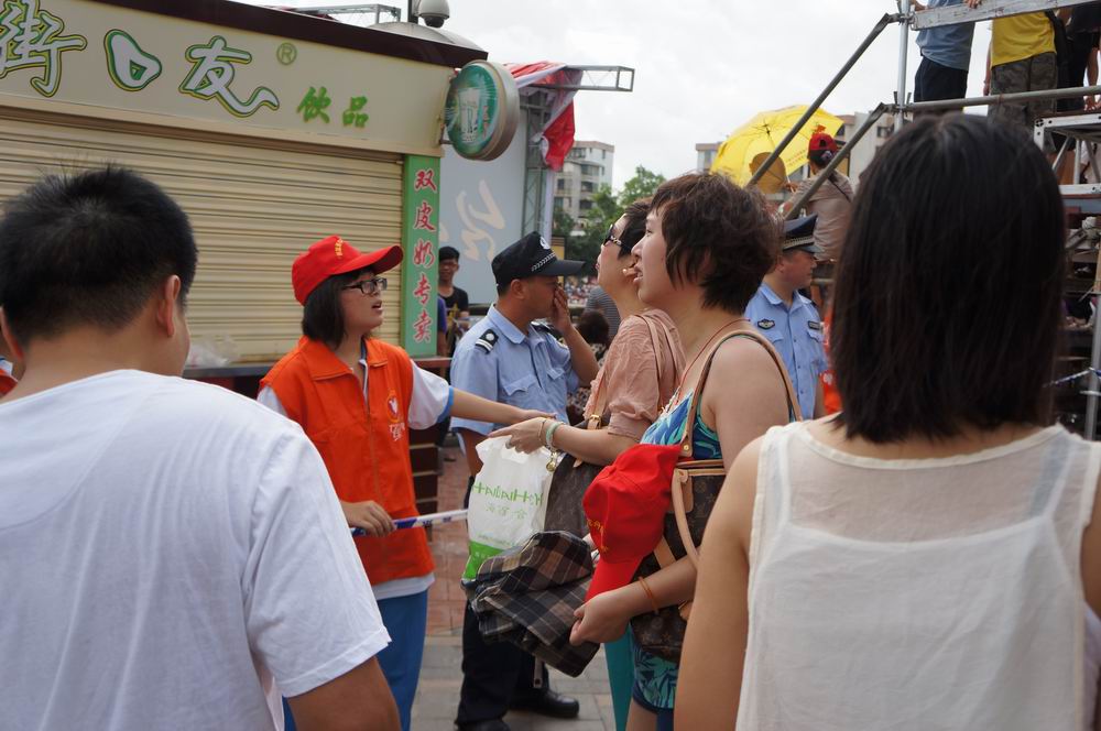 为更好地让义工了解自己的岗位,比赛前夕,市义工组织了多名义工骨干和学校团委书记进行竞赛流程及注意事项的培训,同时到现场熟悉场地和负责岗位要求。比赛当天,100多名义工分成了21个小组,分布在赛场的各个出入口,分别参与了协助验票、派发饮用水和防晒帽、观众场内服务等志愿服务中。比赛现场,河岸两道充满了义工的身影,这两道橙色风景充分体现侨乡义工风采,让整场比赛充满了文明侨乡的味道。