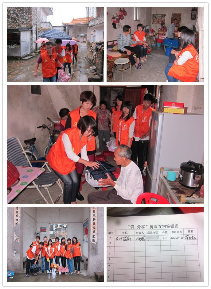 雨絮絮地下着,增添了不少寒意。为及时把冬衣送到贫困家庭手中,义工们冒着雨,提着社会爱心人士捐赠的衣物先后来到西康村委会两户低保户家里,两家孩子都还没有放学,只有老人在家。对于义工的再次到来,老人很是兴奋,如见到儿女归家,热情地起身相迎。义工们把冬衣送到他们手上后,还细心地为他们整理了家里的细杂,详细询问老人当前的生活状况以及孩子的学习情况,鼓励他们战胜困难,战胜病魔,积极乐观地生活(共青团汶村镇委员会)