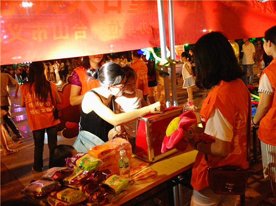 义卖活动从晚上7点30开始,在活动开始前就已经吸引了不少市民的注意,整个广场热闹非凡,当行人知道那是为云南鲁甸地震灾区进行筹款的义卖活动后,纷纷停下脚步购买义卖物品,为灾区人民贡献一份力量。来到活动现场的好多市民都是带着孩子来的,有的家长表示“带孩子来的目的不是要买什么东西给孩子,是要培养孩子养成乐于助人的品质,明白‘一方有难,八方支援’的道理,而这样的义卖活动就是最好的教育机会。”