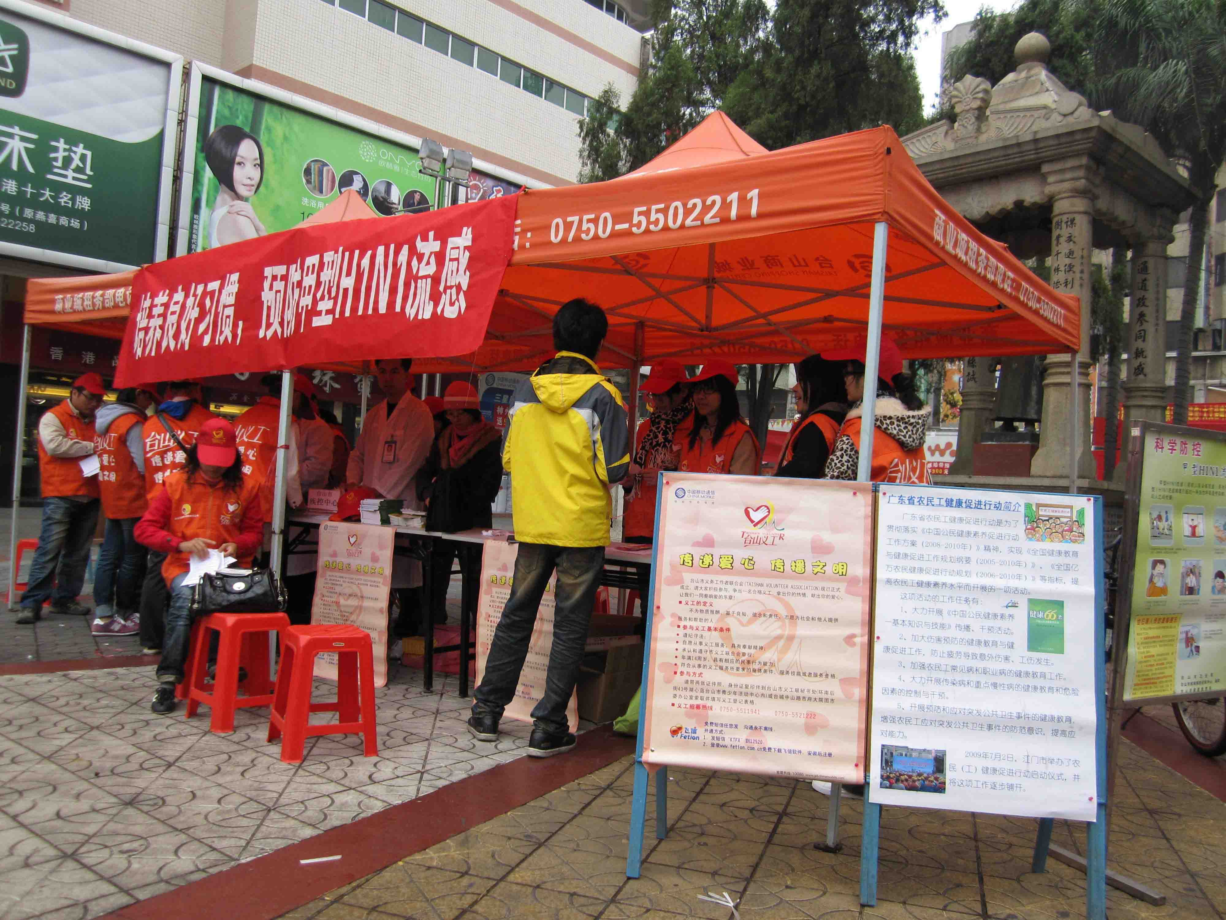 为增强市民防控甲型HINI流感意识,提高群众自我保护能力,充分发挥义工工作在疾病预防控制中的作用,11月15日下午,市义工联联合市爱卫办在台山商业城前举行了一场甲型H1N1流感的防控宣传活动。