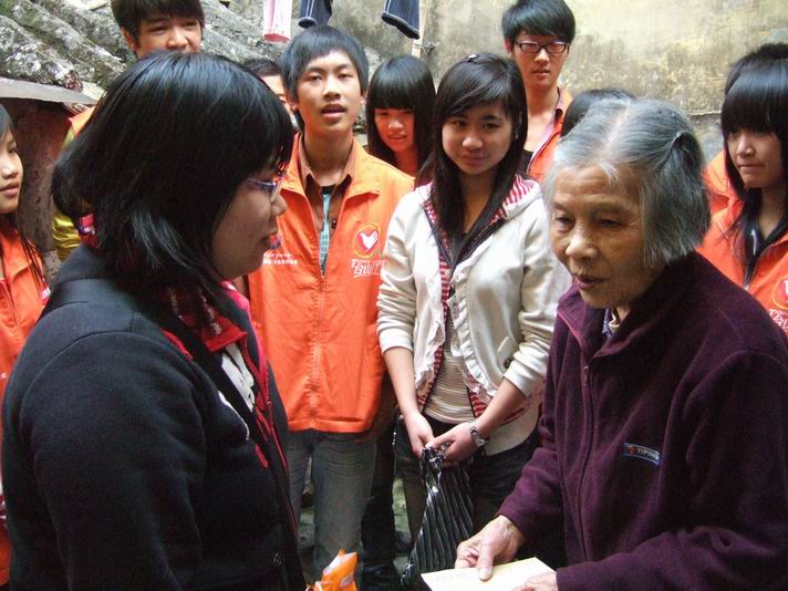 黄婆婆作为台山市技工学校义工服务队结对帮扶的对象,他们已多次组织学生义工对其进行探访,为此,黄婆婆对他们是深表感激。