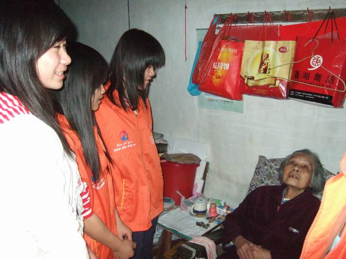 1月19日下午,台山市技工学校义工服务队一行10多人,来到了居住在环南一里的孤寡老人黄婆婆家中进行慰问,他们除了为老人送上了慰问金和生活用品外,还帮黄婆婆把那简陋的小屋清洁了一番,让老人家能干净舒适地过新年。