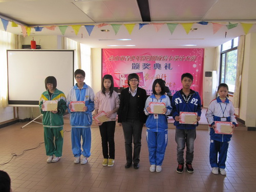 3月26日上午,台山市青少年原创邮政信卡设计大赛颁奖仪式在市青少年活动中心举行,团市委副书记伍小霞、柯嘉妮和市邮政局副局长陈文波等领导与获奖学生共100多人参加了活动。陈文波副局长和柯嘉妮副书记分别作了讲话。现场为获得高中组、初中组和小学组三个组别各奖项的优秀学生颁发了奖金和奖品。获得高中组一等奖的是敬修中学李笑妃、初中组一等奖获得者是培正中学樊晓樱、小学组一等奖由伍时畅纪念小学蔡绮玲获得。
