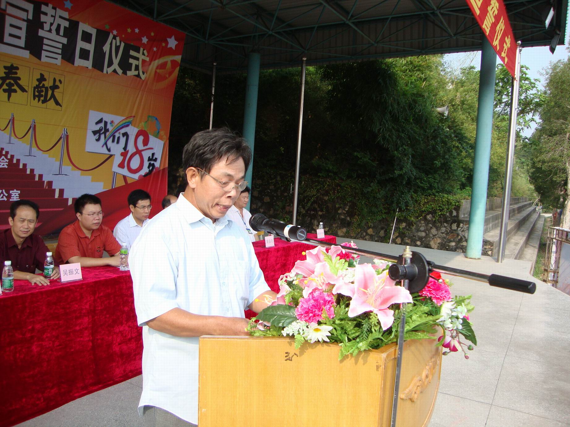 宣誓仪式上,来自台山一中的蔡昌盛同学代表全市所有即将迈入十八岁成人行列的青年朋友发表了成人宣言;家长代表赵伯才先生代表家长表达了对孩子们的期望和嘱托;团市委书记李国超代表主办单位做了讲话,号召青年人以“爱国爱乡,开拓开放”的台山人精神作为自己成长成才的方向指引,担起历史赋予当代青年的使命和社会责任;市人民政府副市长程学斌代表市委、市政府作了重要讲话,向迈入18岁的公民们提出了三点希望:树立远大理想,立志报效祖国。;二是进一步刻苦学习,全面提高自身素质;三是勇于开创新风,竞显时代风流。