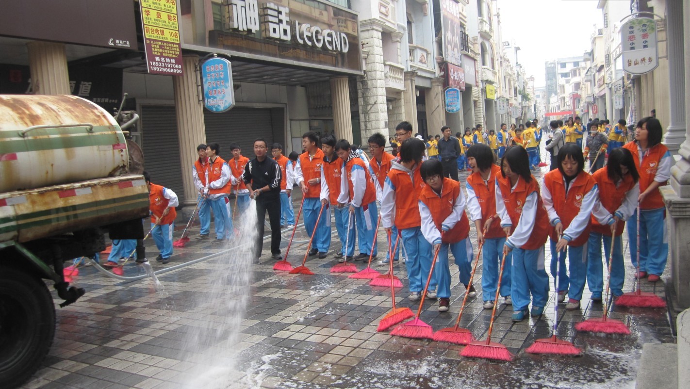 本次活动队伍由一中、侨中、台师、更开、培英、技工、电大等7支学校义工服务队和社会义工共200多人组成,阵容庞大。上午8点, 所有参加活动的义工就齐齐拿着清洁工具整装待发。在举行启动仪式并进行简要分工说明后,义工们就分批赶到自己队伍所负责的区域,步行街上每一个角落都布满了义工的身影。经过两个小时的清洁,彻底改造了步行街,经过的市民都会赞称“好嘢,好嘢!”