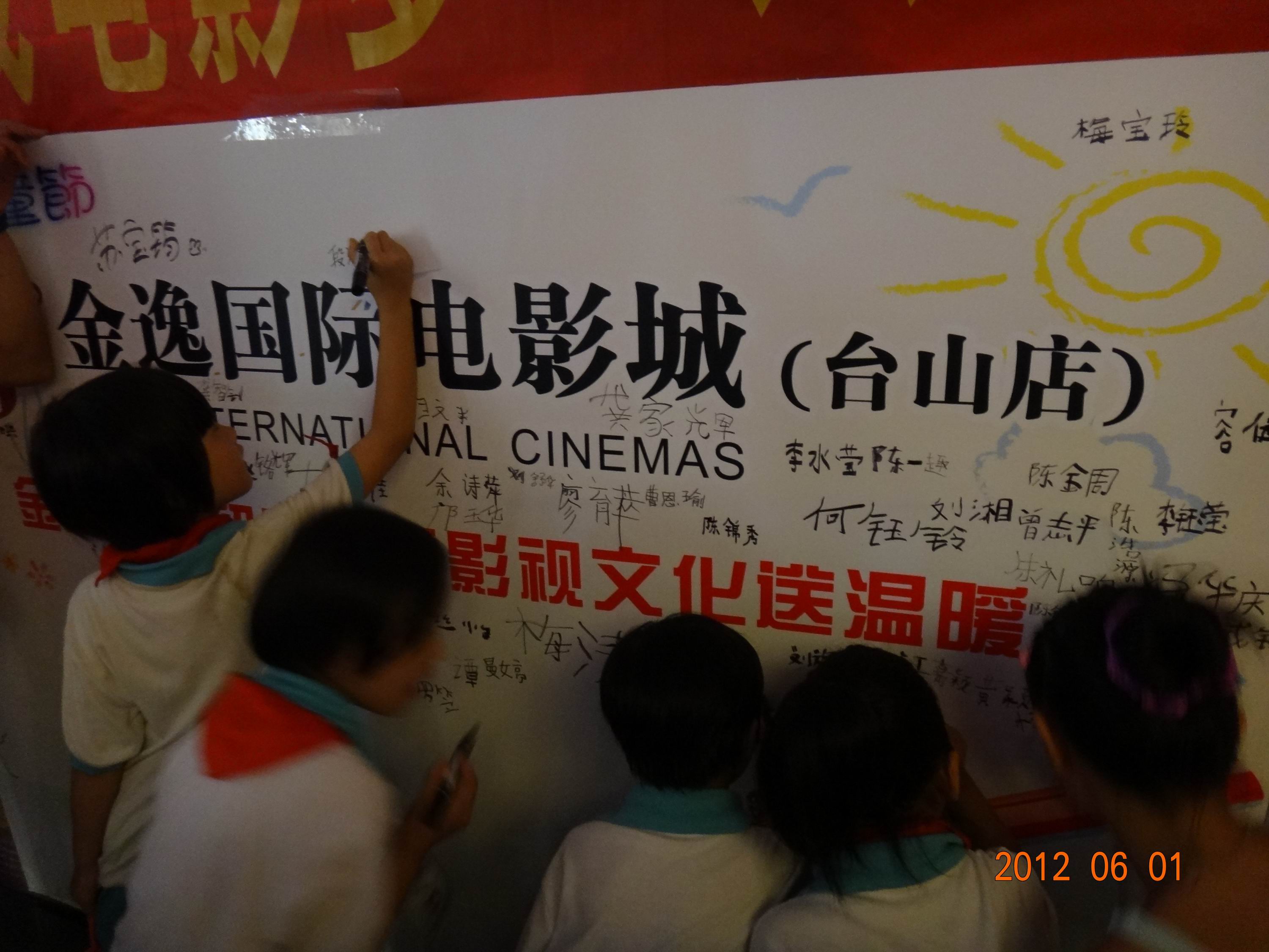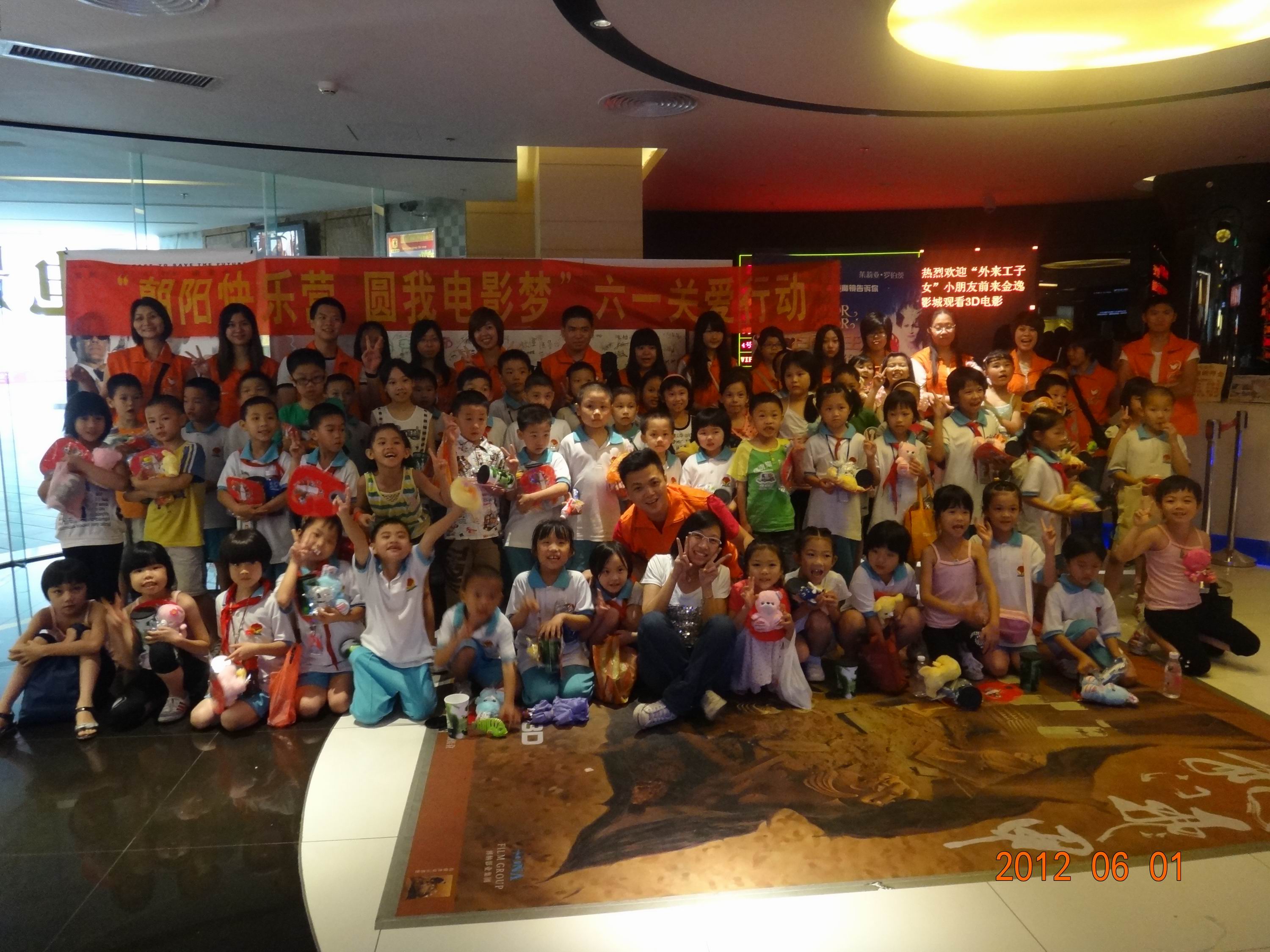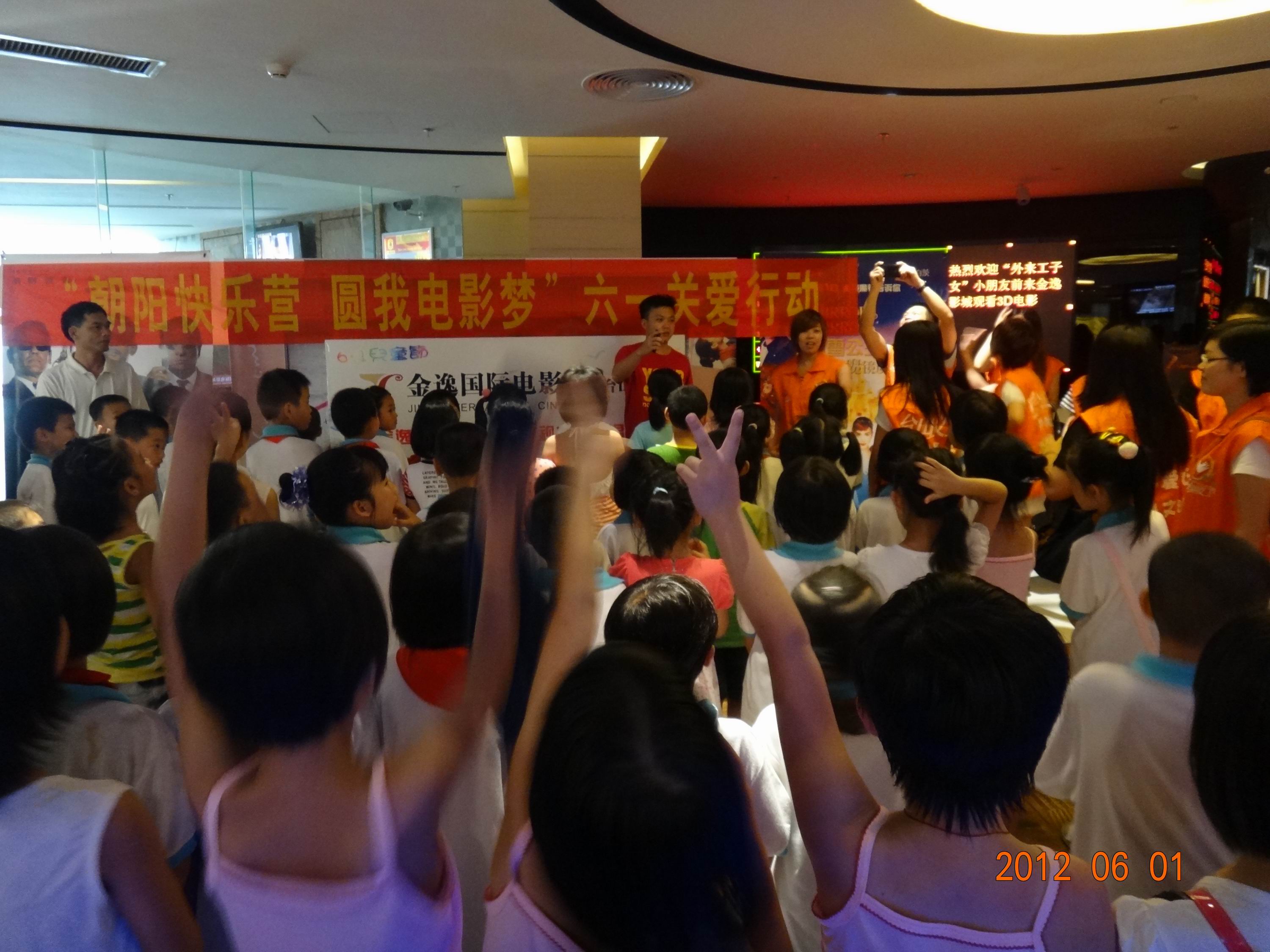 当天下午,孩子们在义工的带领下来到了电影城。在影城大厅里,义工们和孩子们一起欢度了一个简单而欢乐的活动启动仪式,他们一起签名留念,一起照相,一起玩一起笑,欢笑声传遍了影城的每一个角落。此外,电影城还为孩子们准备了“六一”礼物,在义工的协助下,把已准备好的礼物赠送到每个孩子的手里。带着礼物,孩子们迫不及待的走进了电影大厅观看了这部正义与勇气的动画电影。