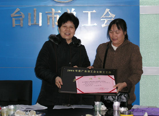 2006年,我市广大女职工在建设和谐台山的进程中,不断增强工人阶级主人翁责任感和使命感,爱岗敬业,无私奉献, 用自己的辛勤劳动和聪明才智,为侨乡的经济发展建功立业。一批女职工集体和个人受到省和江门市表彰。