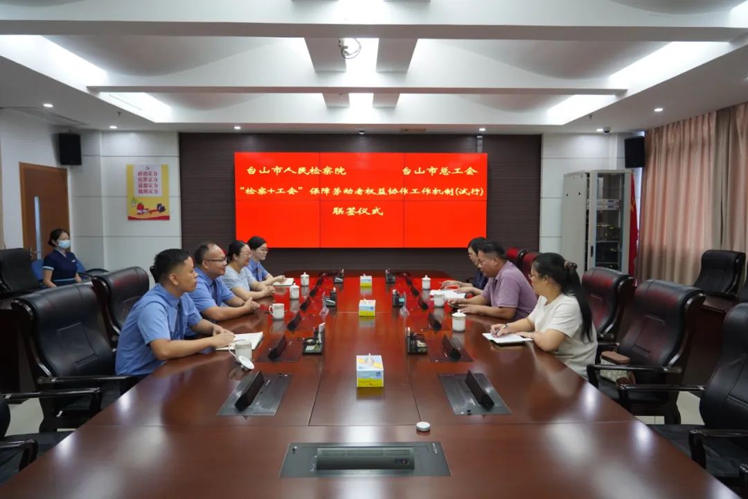 会上,市总工会与市人民检察院共同签订了《台山市“检察+工会”保障劳动者权益协作工作机制》,并就如何发挥工会劳动法律监督和检察监督的联动作用,协同推进运用“一函两书”制度保障劳动者权益,进行了深入讨论与交流。