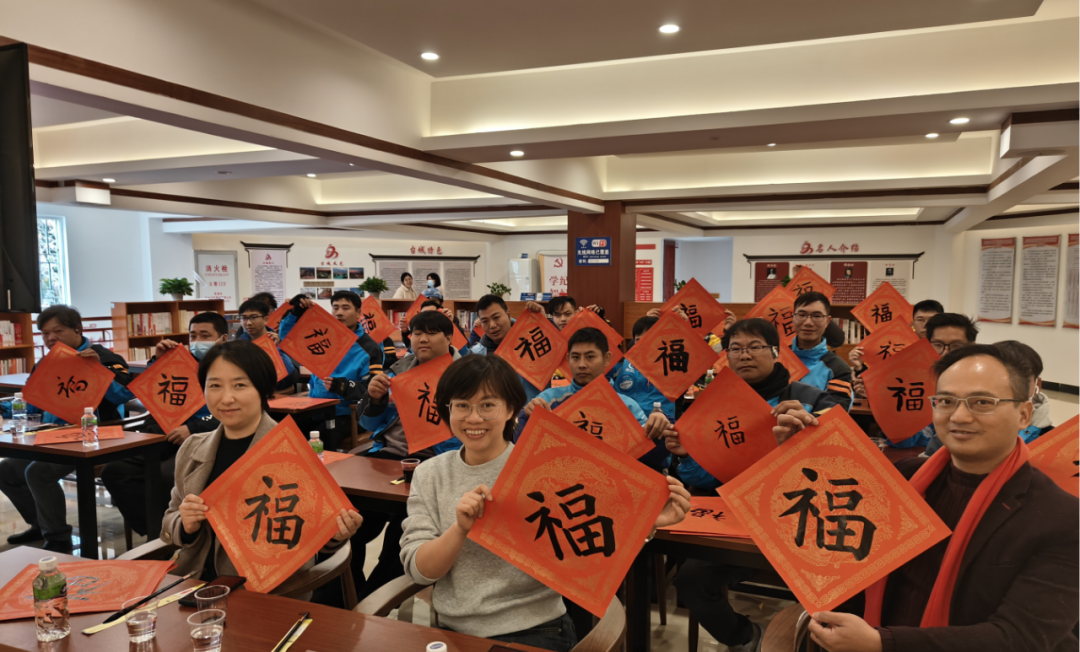 每个活动现场均墨香四溢,书法家们妙笔生花,一副副饱含年味、寓意吉祥的春联一气呵成。职工群众们满怀期待地围在桌前,与书法家们交流互动,挑选自己心仪的春联,职工群众们拿着专属的春联和“福”字,脸上洋溢着幸福和希望,现场气氛其乐融融。