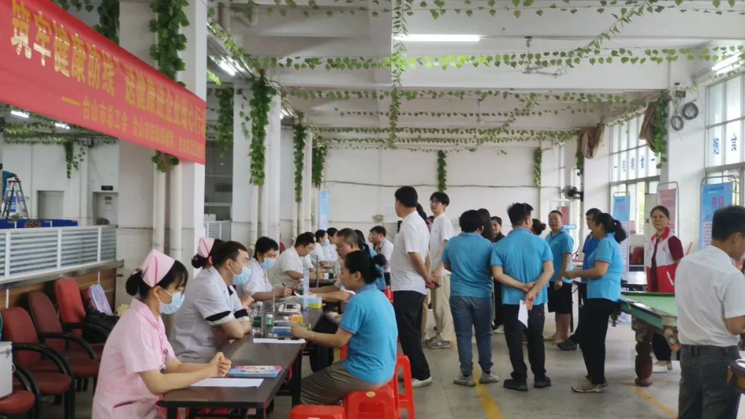 4月27日、28日,市总工会联合市妇幼保健院(市北区医院)分别到日升餐厨科技(广东)有限公司、台山市金桥铝型材厂有限公司开展“送健康进企业”活动,为280余名一线职工提供免费健康体检和咨询服务。