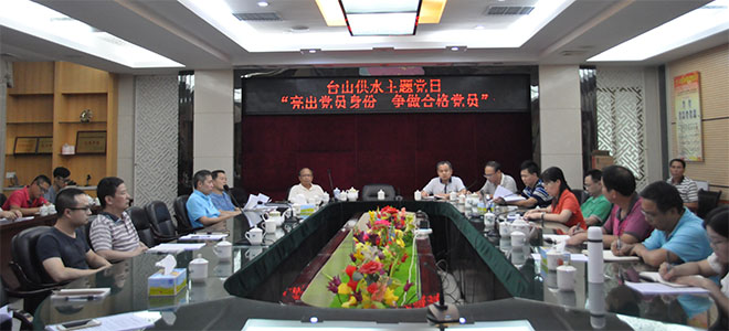 9月14日下午,台山市自来水有限公司党总支为深入贯彻上级党委关于《推行主题党日活动制度》和《规范党员佩戴党员徽章》有关文件的通知精神。举行了主题为“亮出党员身份,争做合格党员”的活动。党总支副书记陈建铮同志主持了会议,全体在职党员近50人到会学习。